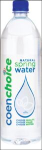 The coenchoice water is a white-label product from Creekside Springs. It is available in both spring and alkaline: